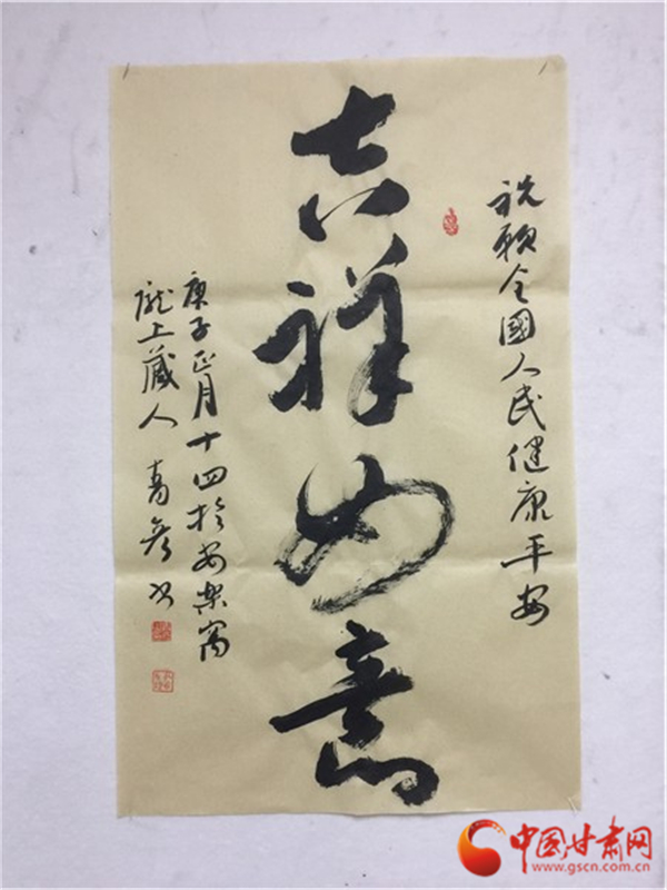 中國(guó)甘肅網(wǎng)2月12日訊(本網(wǎng)記者 張?zhí)m琴 張玉芳)2020年新春,面對(duì)突如其來(lái)的新冠肺炎疫情,全國(guó)人民正在以必勝的信心全力打贏這場(chǎng)沒(méi)有硝煙的戰(zhàn)爭(zhēng)。翰墨傳情,為抗疫助力。2月11日,由甘肅省文聯(lián)主辦,甘肅省文聯(lián)所屬文藝家協(xié)會(huì)、中國(guó)甘肅網(wǎng)承辦的甘肅文藝界戰(zhàn)“疫”主題作品展播活動(dòng)正式啟動(dòng)。我省12位書法大家揮毫潑墨,這些作品為所有奮戰(zhàn)在抗疫一線和防控疫情工作的平凡天使加油鼓勁,祈禱祝福,用文藝凝聚起抗擊疫情的強(qiáng)大精神力量,為我省防控疫情宣傳助力,受到了社會(huì)各界的贊譽(yù)。
