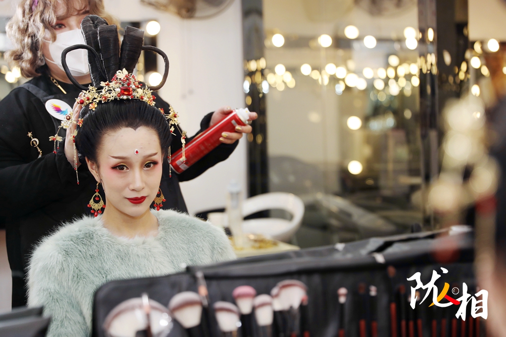 4月10日,陳婉琪做了三個多小時的造型,“因?yàn)槭且獏⒖级鼗捅诋嫷膬?nèi)容來做,所以不管是服飾還是妝容,都要一點(diǎn)點(diǎn)的調(diào)整。”