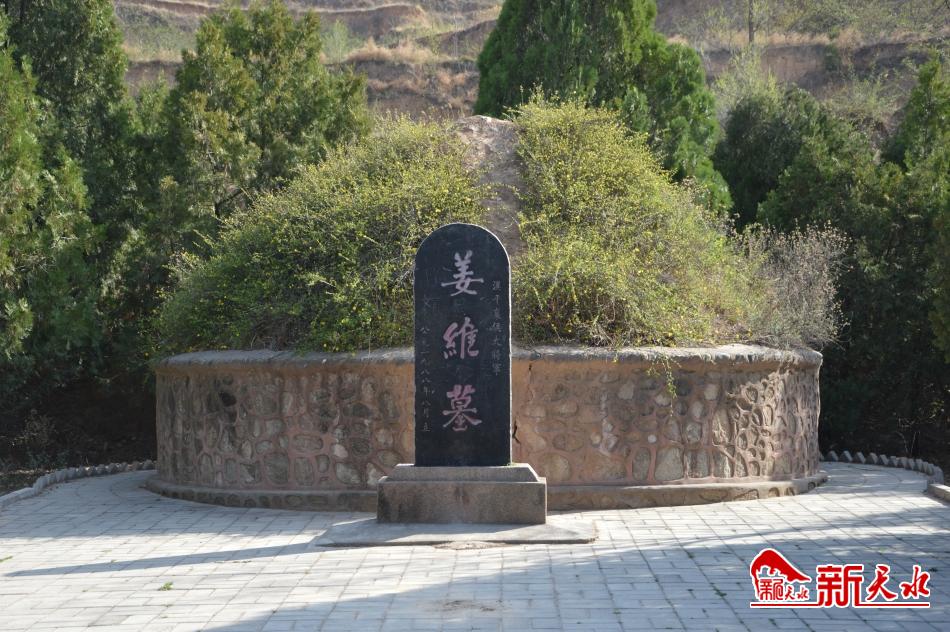 陽(yáng)春三月,春意盎然,我興致勃勃地來(lái)到距甘谷縣城7公里的姜家莊,在老教師王柏林的陪同下,沿著蜿蜒曲折的小石子路,踏著當(dāng)年姜維生活的足跡尋訪探古。從姜家村河堤公路向右轉(zhuǎn),姜維紀(jì)念館就在眼前,大殿內(nèi),姜維塑像身材魁梧,雙眼凝視渭川,仿佛仍在追憶當(dāng)年馳騁疆場(chǎng)的歲月。