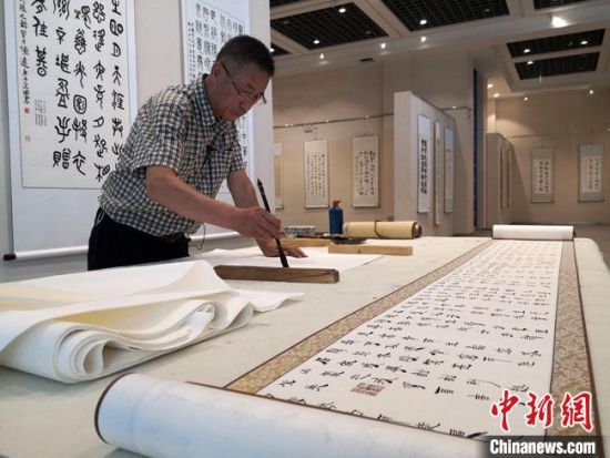 中新網(wǎng)蘭州9月22日電 (馮志軍 高瑩 閆姣)30多年前,因參與發(fā)現(xiàn)位于甘肅河西走廊大漠戈壁“深閨”中的懸泉置遺址,現(xiàn)場(chǎng)出土大量珍貴的簡牘,令現(xiàn)任敦煌市文化館美術(shù)室主任、敦煌市美術(shù)館展覽部主任朱群魂?duì)繅?mèng)繞了很多年。而此后,當(dāng)時(shí)出土簡牘上的漢簡書體,成為他研究、傳承和弘揚(yáng)的事業(yè)。