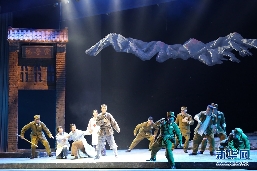 5月30日晚,大型秦腔現(xiàn)代戲《肝膽祁連》在蘭州音樂(lè)廳精彩上演?!陡文懫钸B》以真實(shí)的歷史故事改編,講述了愛(ài)國(guó)民主人士高金城營(yíng)救紅西路軍戰(zhàn)士的感人故事。新華網(wǎng)發(fā)(王晶晶 攝)
