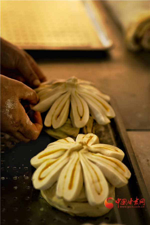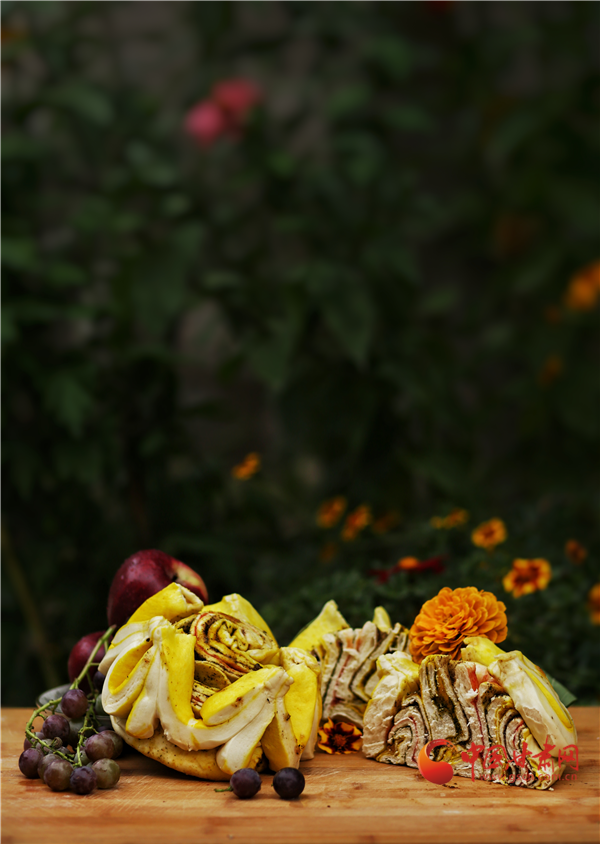 香豆、油酥、姜黃、紅曲、胡麻……最樸實(shí)的食材,最傳統(tǒng)的工藝,讓月餅在蒸汽中充分鼓脹,最終飽滿盛開(kāi)。卷沿彎曲,狀似玫瑰。切開(kāi),內(nèi)里豐富,色彩斑斕,如同張掖丹霞,熠彩生輝,包羅萬(wàn)象。(本網(wǎng)記者 宋芳科 通訊員 張文)