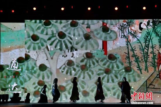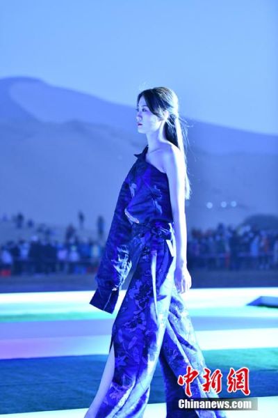 10月16日晚,敦煌國(guó)際時(shí)尚周在鳴沙山月牙泉景區(qū)開幕,張肇達(dá)·張凱惠攜手的作品在這里進(jìn)行了展演秀。圖為敦煌服裝秀展示。 殷春永 攝