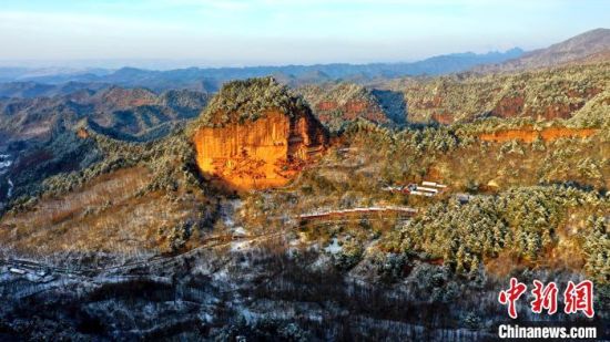 麥積山風(fēng)景區(qū)是中國南北方沉積地層在地表上層的分界線,又是黃河長江兩大流域的分水嶺,雪后景色地貌獨(dú)特。周文濤 攝