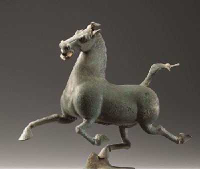 造型矯健精美,作昂首嘶鳴,疾足奔馳狀,被認(rèn)為是東西方文化交往的使者和象征,為中國(guó)旅游的標(biāo)志。