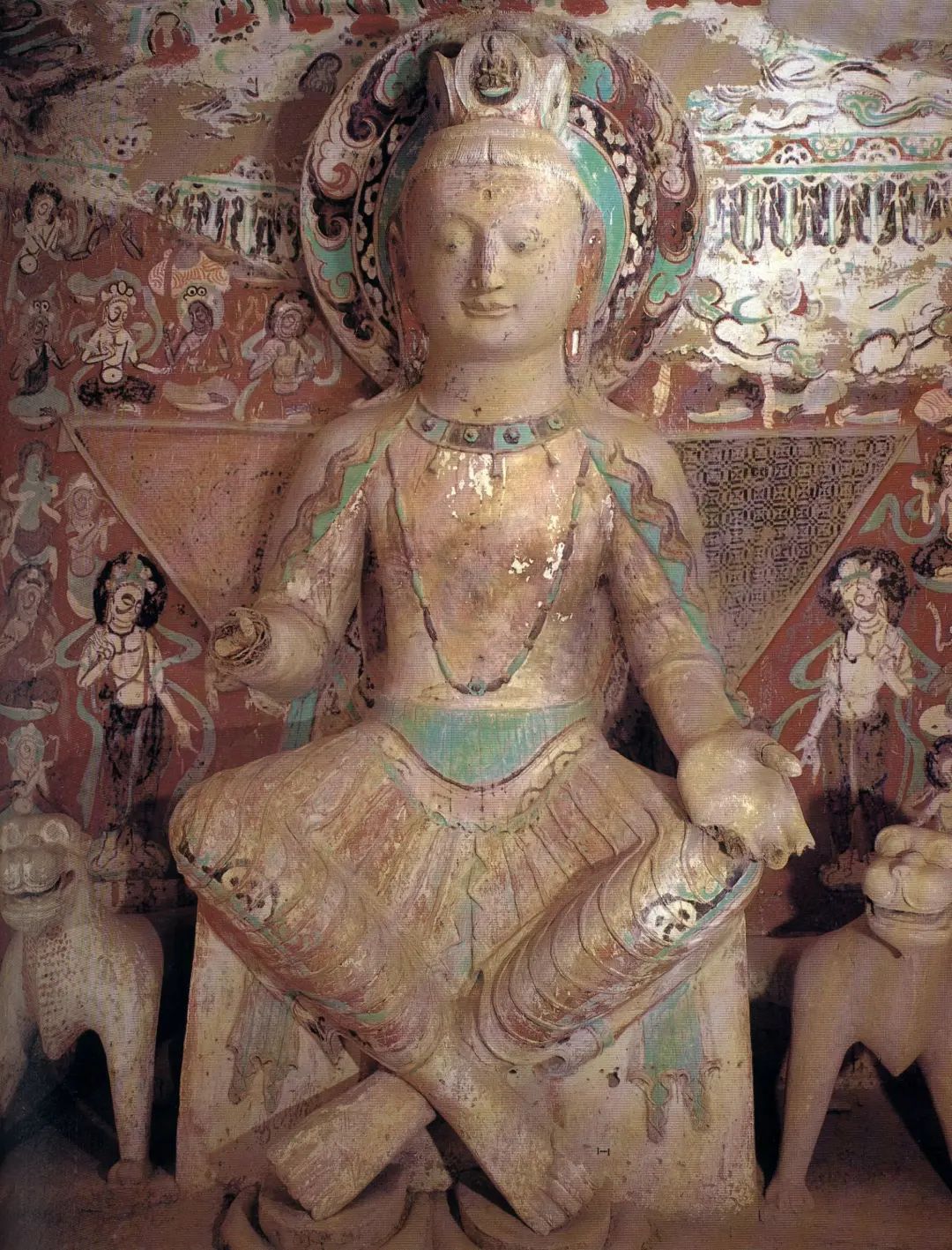 莫高窟第275窟西壁交腳菩薩旁邊的獅子 | 圖源《中國石窟·敦煌莫高窟》