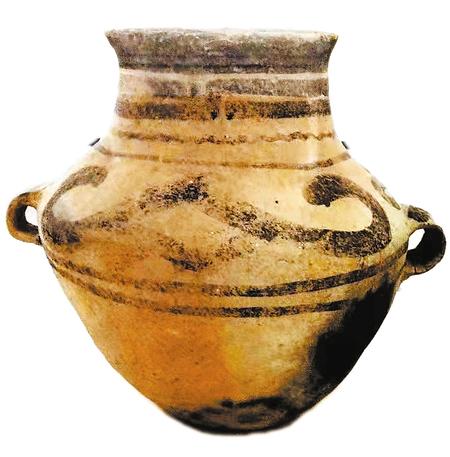 辛店文化雙鉤紋雙耳彩陶罐