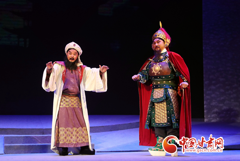 隴劇《敦煌》以回鶻族公主格麗莎的命運(yùn)軌跡為結(jié)構(gòu)框架和發(fā)展脈絡(luò),描繪了一幅炎黃子孫在血與火的洗禮中,保護(hù)中華民族文化的宏偉畫卷,充分詮釋了敦煌文化“美人之美”“美美與共”的開放胸襟,“止戈為武”“協(xié)和萬邦”的和平思想,“和為貴”“和而不同”的東方智慧以及“自強(qiáng)不息”的奮斗精神、“舍生取義”犧牲精神。
