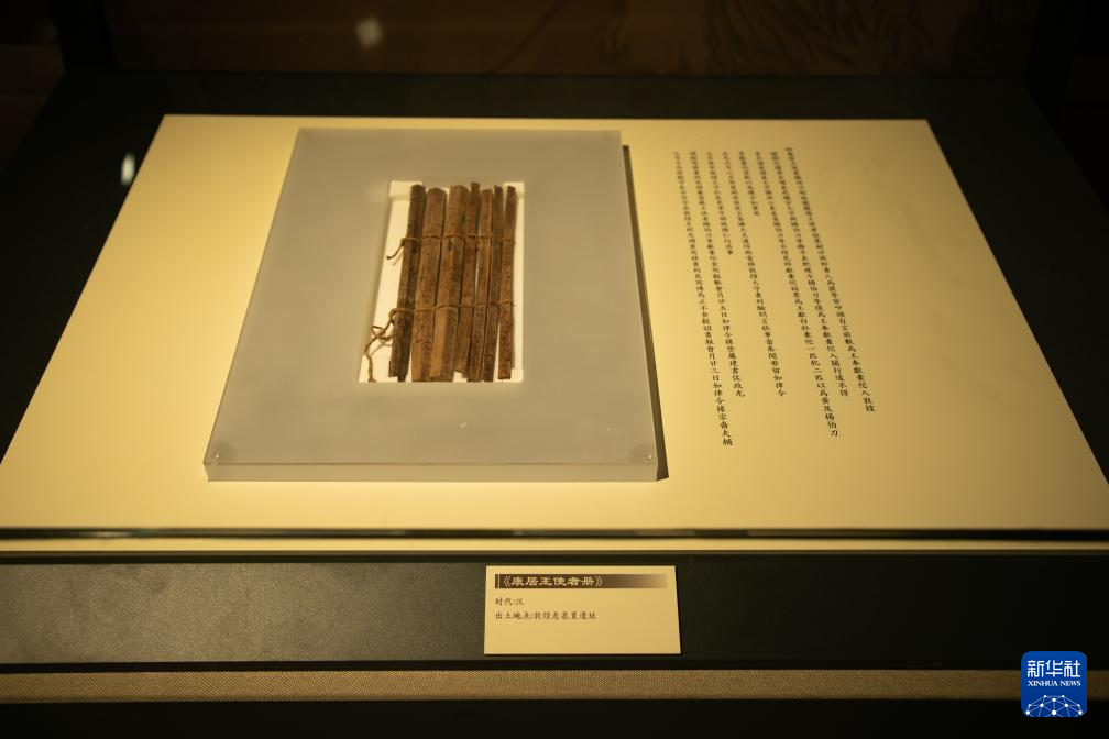 這是9月7日拍攝的甘肅簡牘博物館展廳內(nèi)的“康居王使者冊”。新華社記者 郎兵兵 攝