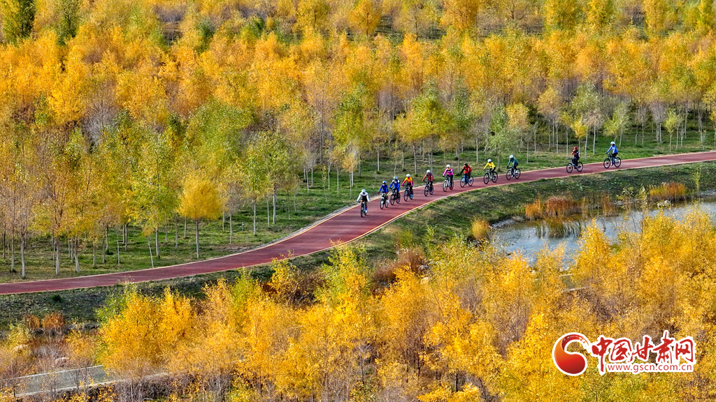 10月16日,甘肅省張掖奧林匹克森林公園萬畝人工胡楊林景區(qū)內(nèi),層林盡染、碧水環(huán)流,成為游客和市民欣賞美景和健魄身心的好去處。