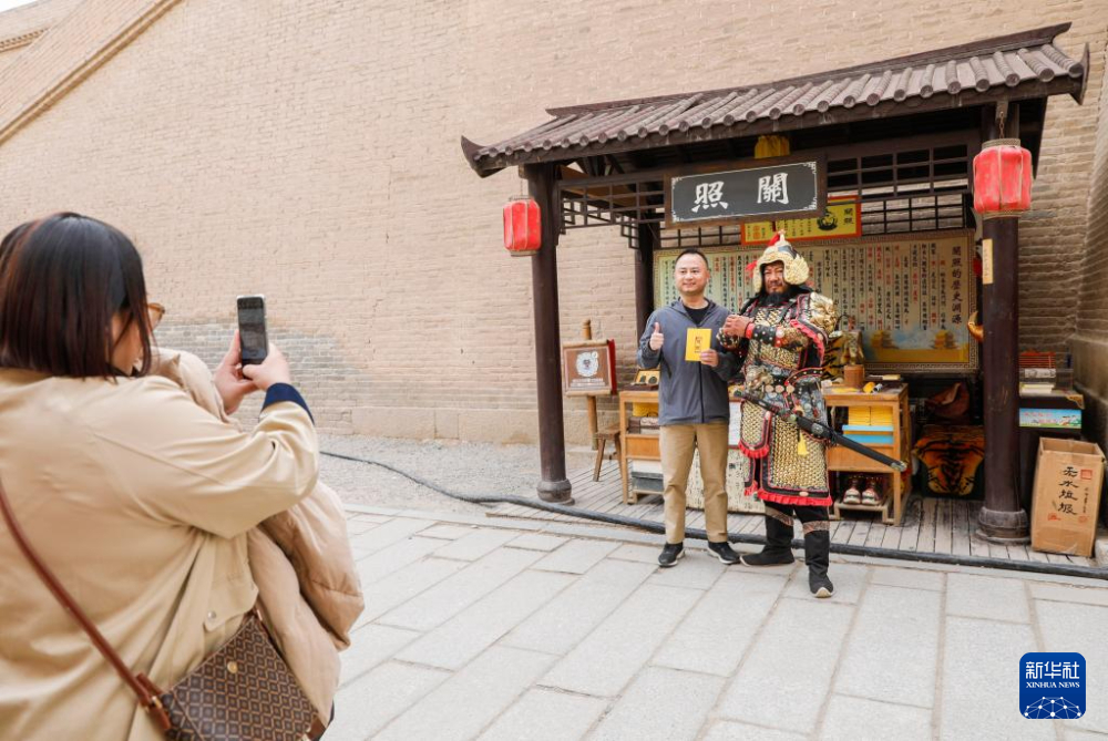 “關(guān)照”可理解為古時(shí)候的“護(hù)照”。嘉峪關(guān)的游客可以買上一份文創(chuàng)產(chǎn)品“關(guān)照”,聽“關(guān)長”李森宣告自己“合法通關(guān)”,模擬一場(chǎng)告別故土、前往西域的出關(guān)儀式。