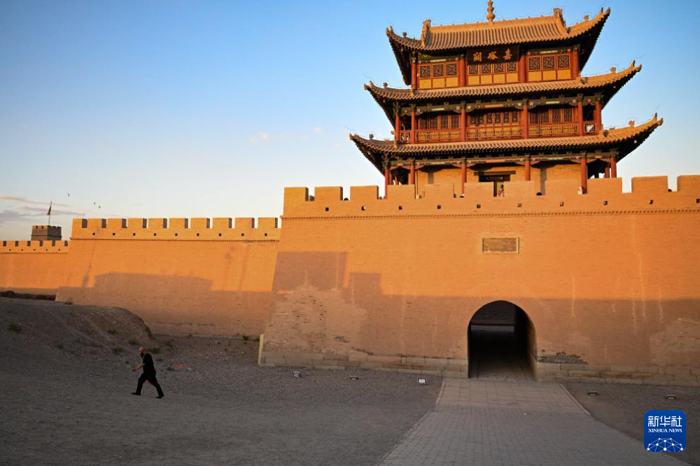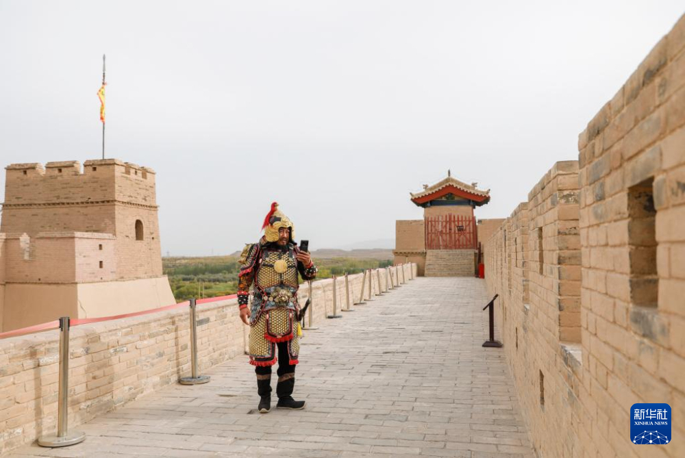 9月26日,李森在拍攝宣傳甘肅嘉峪關(guān)關(guān)城景區(qū)的短視頻,他在短視頻平臺(tái)已有40多萬粉絲。新華社記者 方欣 攝