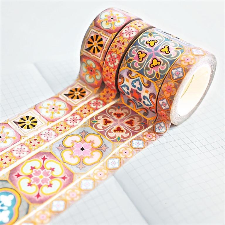 紋樣膠帶——在眾多文創(chuàng)產(chǎn)品中,膠帶的銷(xiāo)售或人氣排行榜靠前。紙膠帶雖是個(gè)小物件,但藝術(shù)化的紙膠帶卻能夠滿(mǎn)足多種需求,適應(yīng)多層次人群的需求。圖形多來(lái)自器物上的印刻、繪制圖案,或抽象或具體。這也就體現(xiàn)了兩種效果,一種是文藝范,另一種是趣味感,來(lái)自重構(gòu)傳統(tǒng)的高大上,消解歷史的審美觀(guān)。設(shè)計(jì)靈感來(lái)自中國(guó)傳統(tǒng)紋樣,融合敦煌元素,有層次的色彩斑斕,圖案以及細(xì)節(jié)都恰到好處。