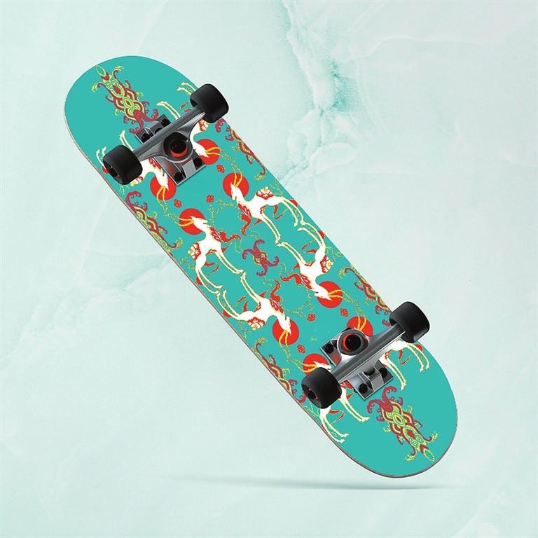 九色鹿滑板——以敦煌壁畫(huà)與極限運(yùn)動(dòng)相結(jié)合的設(shè)計(jì),不僅讓傳統(tǒng)文化玩出了新花樣,同時(shí)掀起了一場(chǎng)以敦煌文化為代表的傳統(tǒng)文化消費(fèi)潮。九色鹿滑板,既代表年輕人的活力和動(dòng)力,又融合了神秘敦煌的藝術(shù)風(fēng)格。以九色鹿為創(chuàng)意靈感的敦煌九色鹿系列聯(lián)名滑板,用扁平插畫(huà)風(fēng)格進(jìn)行再創(chuàng)作,用纖細(xì)柔美的線(xiàn)條凸顯九色鹿的優(yōu)美身姿,既保留傳統(tǒng)圖案的華麗精巧,也符合現(xiàn)代審美。
