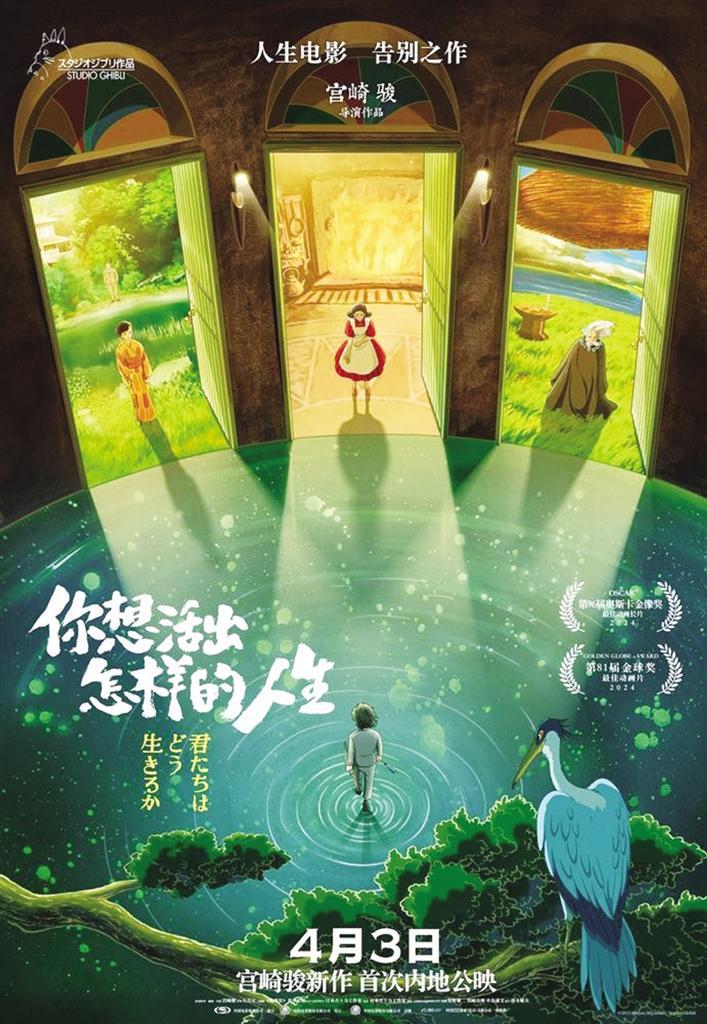 3月14日,剛剛獲得奧斯卡最佳動(dòng)畫長(zhǎng)片的宮崎駿新片《你想活出怎樣的人生》宣布定檔4月3日,同時(shí)發(fā)布了由吉卜力動(dòng)畫工作室為中國(guó)觀眾特別制作的手繪版中文海報(bào)。