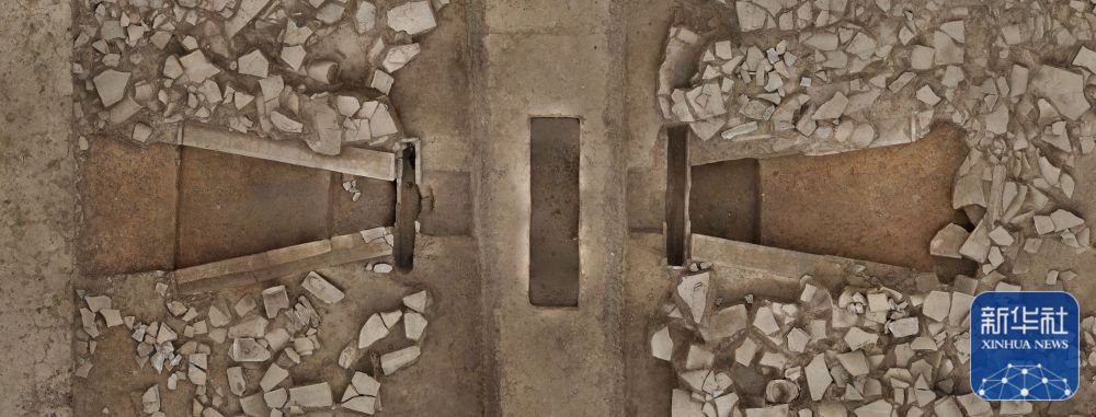 這是甘肅省隴南市禮縣四角坪遺址的排水設施(2024年1月8日攝,無人機照片)。新華社發(fā)(四角坪遺址考古隊供圖)