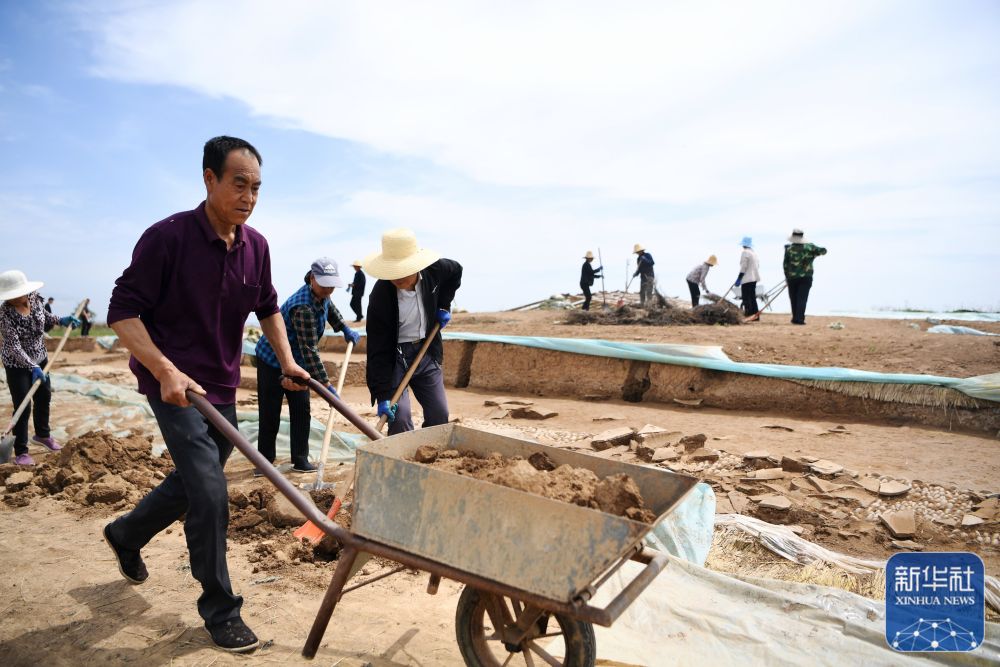 工作人員在甘肅省隴南市禮縣四角坪遺址考古發(fā)掘現場工作(2022年6月10日攝)。