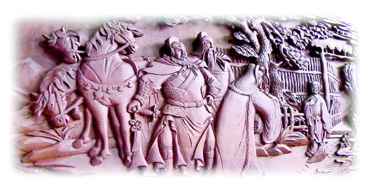 因著榜沙河的滋潤,“民武”木雕擺件大多采用本地質地細密堅韌、不易變形的梨木,所刻作品溫潤而不浮躁,沉穩(wěn)而不輕浮。最具特色的是,在題材選取上極富傳統(tǒng)文人氣息,尤其是施彩擺件,具有較高的藝術水準。這些千姿百態(tài)的圖案,將生活場景和神話故事有機融合在一起,高大悠遠、古拙秀雅,達到了“變形不失真,夸張亦傳神”的藝術境界。