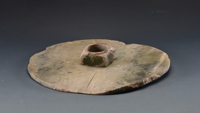 全世界可能只有中國(guó)先民具體提出“天圓地方”的宇宙觀?;蛑辽倏烧f(shuō):全世界只有距今四、五千年前,中國(guó)黃土高原上的先民,具體地用美石或美玉磨制帶中孔的圓形器、方形器,也就是:圓璧與方琮,來(lái)祭祀天神、地祇。先民甚至將圓璧、方琮上下垂直疊壓,將圓璧中孔套在方琮的短射口外,以增加疊壓的穩(wěn)定性。