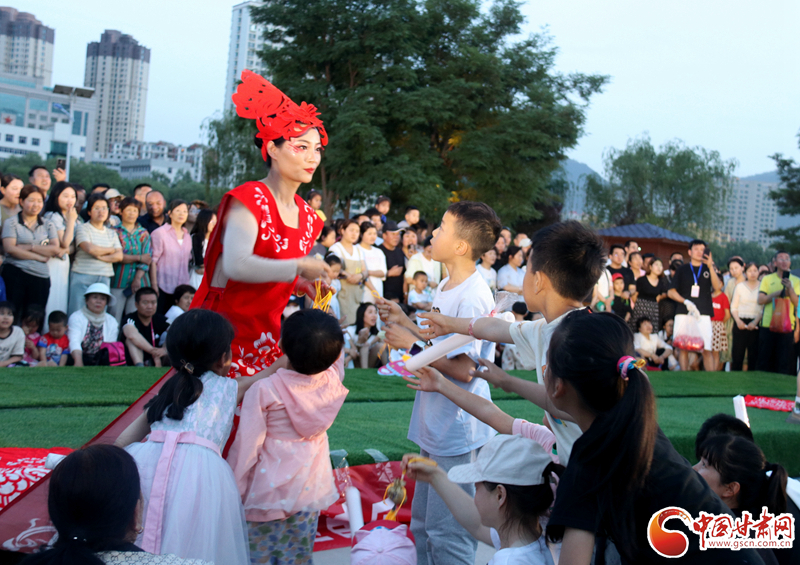 來(lái)自鎮(zhèn)原縣文化館的工作人員身著剪紙服飾,為現(xiàn)場(chǎng)觀眾送上慶陽(yáng)香包,向觀眾們展示慶陽(yáng)獨(dú)特的鄉(xiāng)土風(fēng)情。