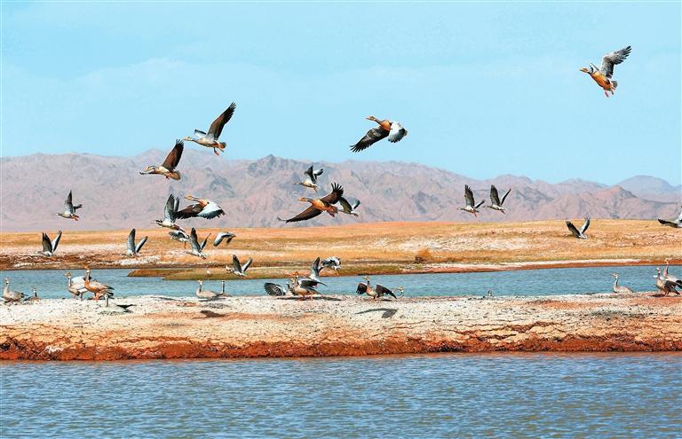 近年來,經過當?shù)赜嘘P部門和甘肅鹽池灣國家級自然保護區(qū)的有效治理和保護,野生動物種群逐漸增多。每年遷徙至此繁衍生息的鳥類種群和數(shù)量不斷增加,時常上演萬鳥翔集的壯觀場景,勾勒出一幅和諧壯美的大自然畫卷。
