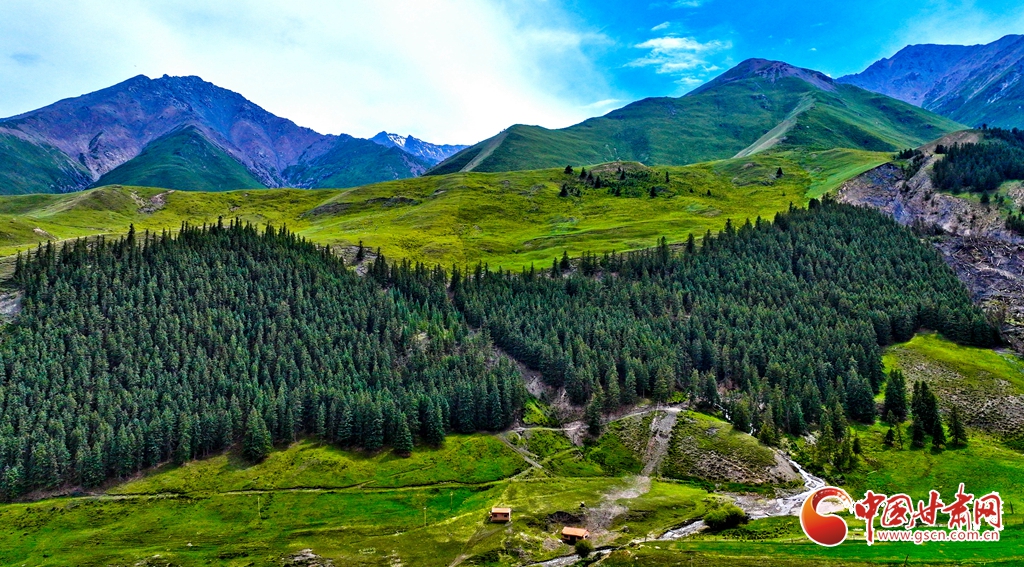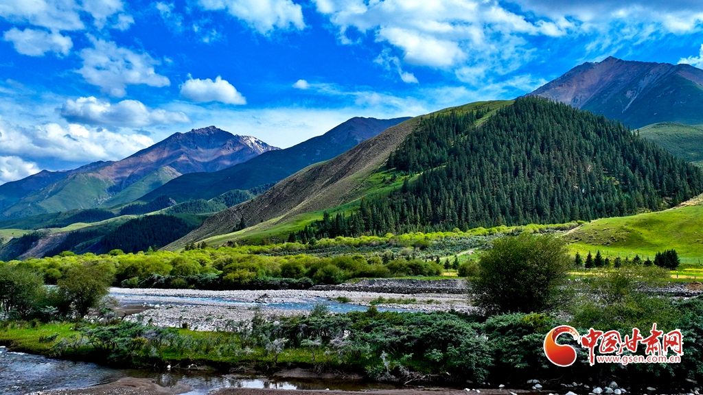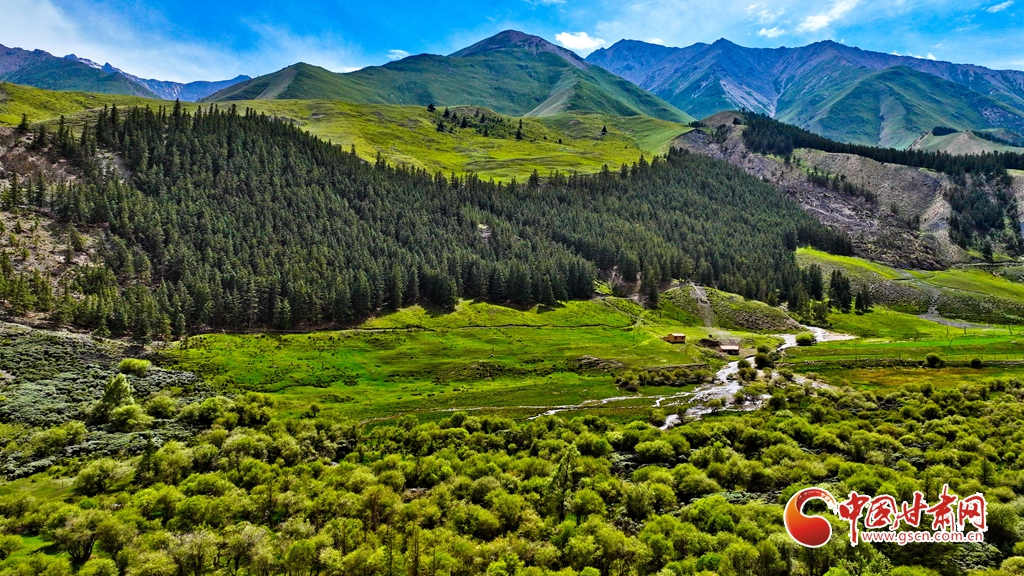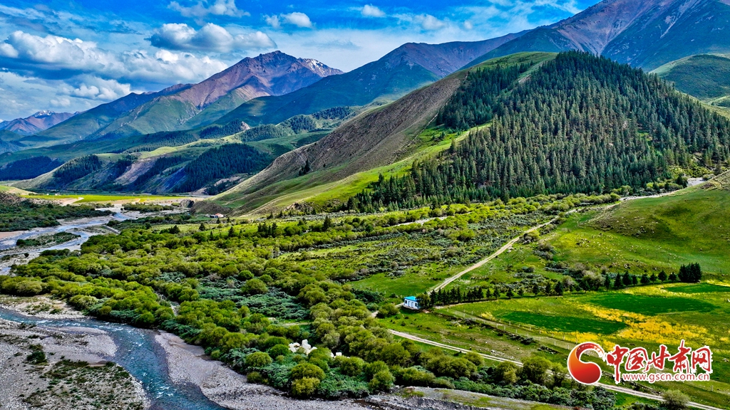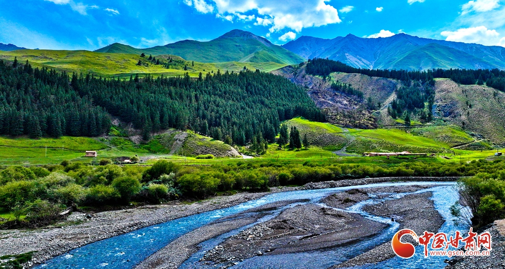 7月2日,祁連山國家公園甘肅省張掖市肅南裕固族自治縣大河鄉(xiāng)段,在高原藍(lán)天白云映襯下,群山環(huán)抱、 雪峰高聳,鳥鳴聲陣陣的濕地、奔騰不歇的黑河水、猶如“巨幅綠毯”的草原,勾勒出一幅風(fēng)光壯美的生態(tài)畫卷。