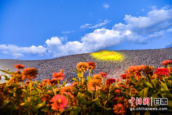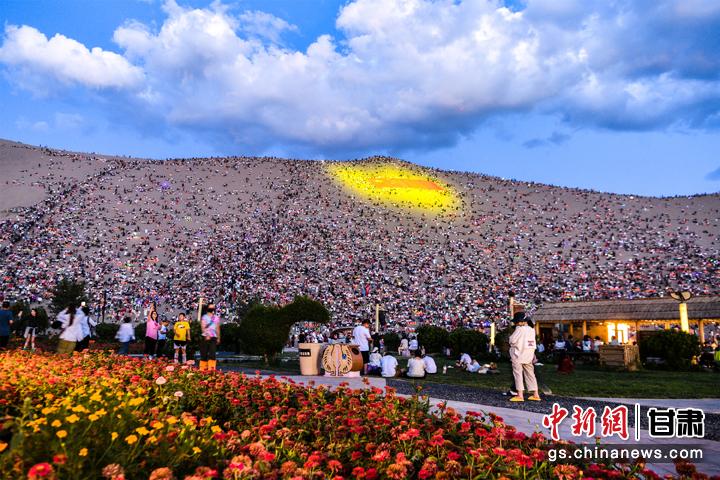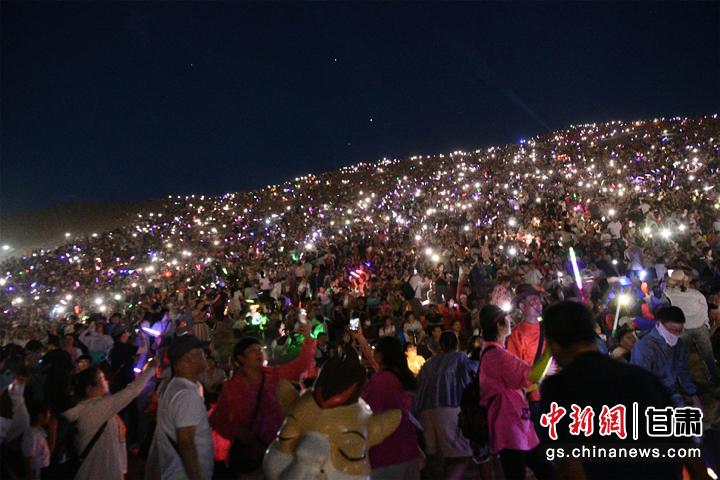 圖為敦煌鳴沙山上,上萬(wàn)名游客靜待萬(wàn)人星空演唱會(huì)開(kāi)幕。王斌銀 攝