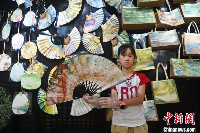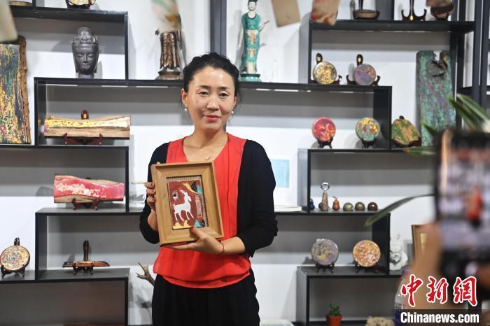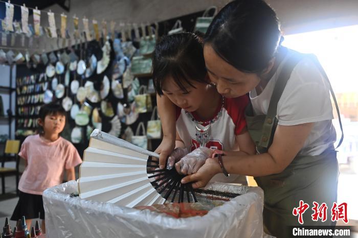 8月20日,甘肅敦煌莫高里工匠村內(nèi),學(xué)員展示研學(xué)成果。工匠村開設(shè)了泥板畫、彩繪、雕塑制作、剪紙、農(nóng)耕體驗(yàn)等課程,現(xiàn)已發(fā)展成為一個集敦煌文化講堂、壁畫書法研習(xí)、美術(shù)設(shè)計、彩塑制作教學(xué)、篆刻藝術(shù)、傳統(tǒng)釀酒體驗(yàn)、農(nóng)業(yè)產(chǎn)業(yè)發(fā)展等于一體的多功能實(shí)訓(xùn)基地。中新社記者 李亞龍 攝