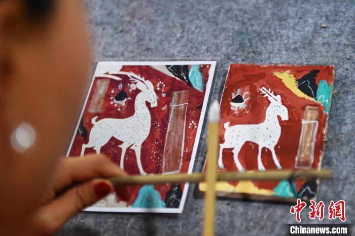 8月20日,甘肅敦煌莫高里工匠村內(nèi),學(xué)員體驗(yàn)敦煌文化研學(xué)課程。工匠村開設(shè)了泥板畫、彩繪、雕塑制作、剪紙、農(nóng)耕體驗(yàn)等課程,現(xiàn)已發(fā)展成為一個集敦煌文化講堂、壁畫書法研習(xí)、美術(shù)設(shè)計、彩塑制作教學(xué)、篆刻藝術(shù)、傳統(tǒng)釀酒體驗(yàn)、農(nóng)業(yè)產(chǎn)業(yè)發(fā)展等于一體的多功能實(shí)訓(xùn)基地。中新社記者 李亞龍 攝