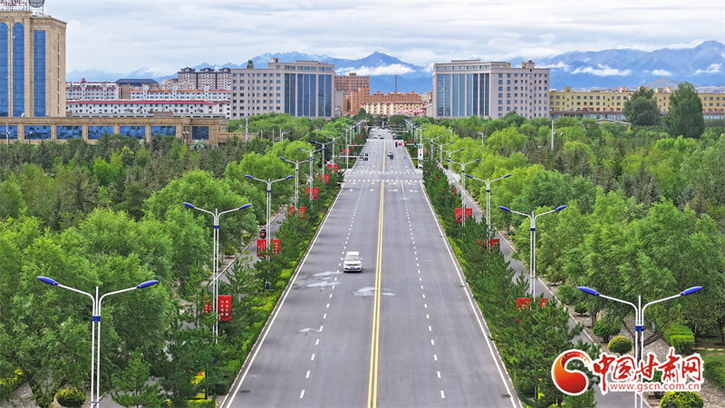 9月5日,雨過天晴的張掖民樂縣,城市清新如洗、生機(jī)盎然。云霧繚繞的山巒與高樓、民居、綠植相映成趣,繪出一幅如詩如畫的生態(tài)圖景。