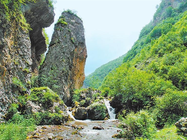 雙石門獨特的景觀,與它所屬的山脈是分不開的。在雙石門峽谷深處,群峰相連,最高峰是被譽為“撐天銀碑”的露骨山,主峰海拔3941米,是臨近數(shù)縣海拔最高的山峰,同時也是漳縣、渭源、卓尼三縣的交界處。