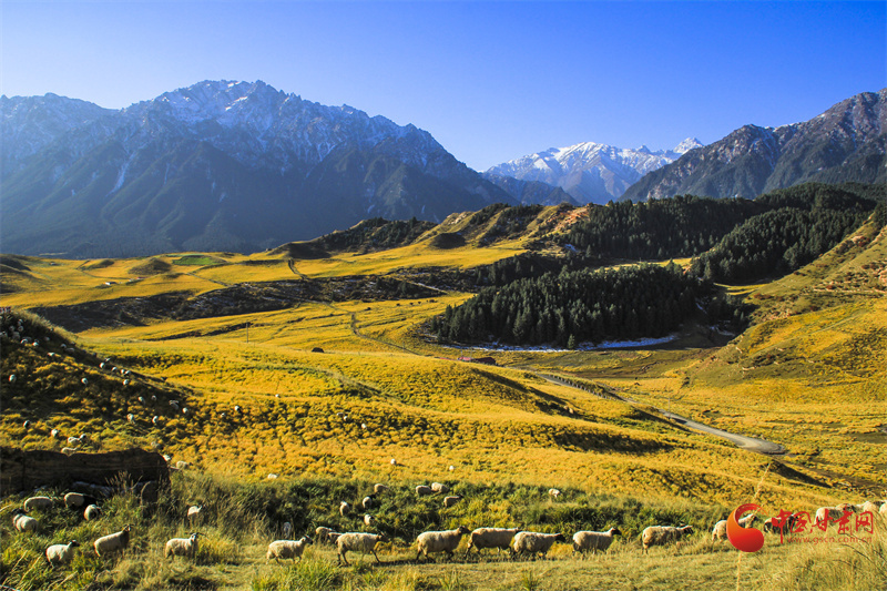 雪山之下,層林盡染,秋日的馬蹄寺美不勝收,裕固歌聲從北寺傳來(lái),身著裕固服飾的歌者為游客帶來(lái)最炫民族風(fēng)。