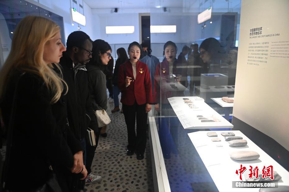 10月22日,2024青年漢學(xué)家研修計(jì)劃甘肅班團(tuán)隊(duì)22個(gè)國(guó)家的青年漢學(xué)家,走進(jìn)甘肅省天水市秦安縣大地灣遺址參觀并進(jìn)行專題研修。大地灣遺址是新石器時(shí)代大型聚落遺址,出土了中國(guó)乃至世界上最早的彩陶文化、最早的文字符號(hào)、種植生產(chǎn)了中國(guó)第一批糧食品種黍、出現(xiàn)了最早的宮殿式建筑、發(fā)明了世界最早的水泥地面、創(chuàng)造了最早的繪畫作品——F411地畫。圖為22國(guó)青年漢學(xué)家參觀大地灣博物館。中新社記者 李亞龍 攝