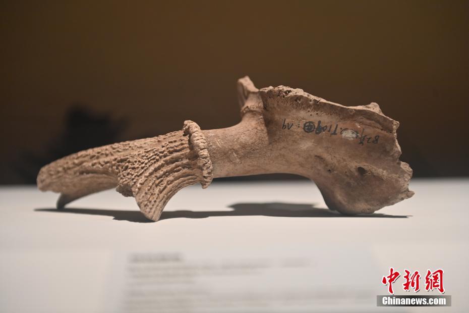 10月22日,2024青年漢學(xué)家研修計(jì)劃甘肅班團(tuán)隊(duì)22個(gè)國(guó)家的青年漢學(xué)家,走進(jìn)甘肅省天水市秦安縣大地灣遺址參觀并進(jìn)行專題研修。大地灣遺址是新石器時(shí)代大型聚落遺址,出土了中國(guó)乃至世界上最早的彩陶文化、最早的文字符號(hào)、種植生產(chǎn)了中國(guó)第一批糧食品種黍、出現(xiàn)了最早的宮殿式建筑、發(fā)明了世界最早的水泥地面、創(chuàng)造了最早的繪畫作品——F411地畫。圖為大地灣博物館展品梅花鹿角。中新社記者 李亞龍 攝