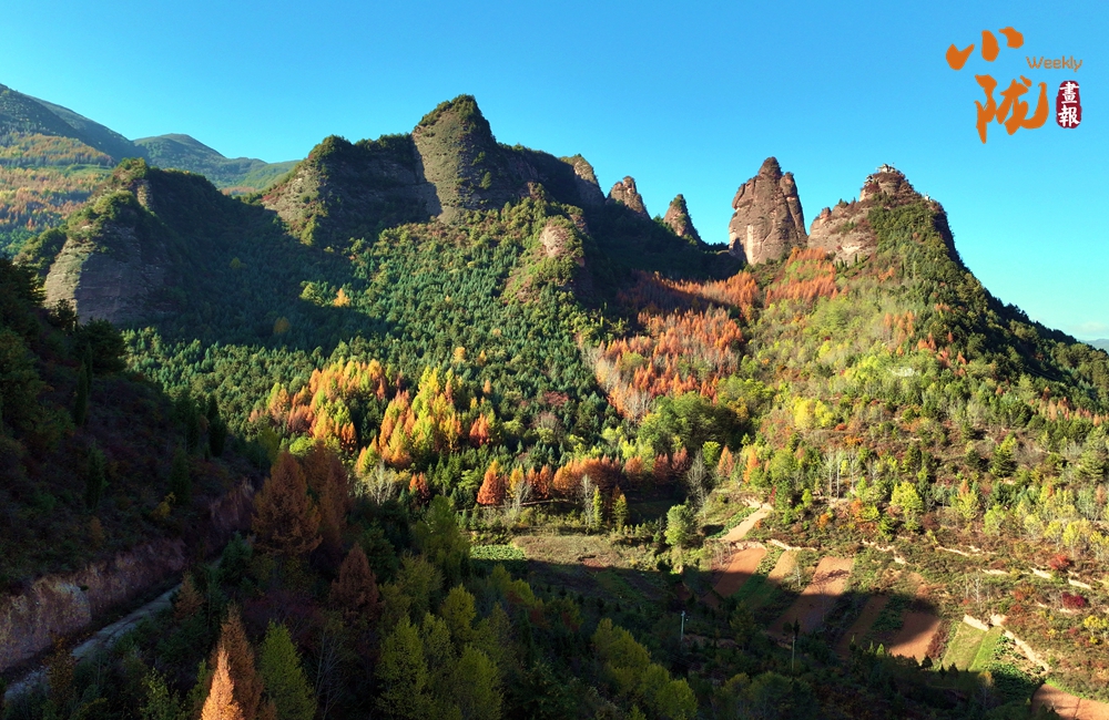 陽光下,山間的樹林逐漸換上了金黃色,為山巒增添了更多的色彩。