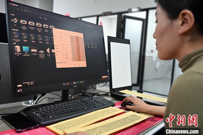 2月27日,在甘肅甘南藏族自治州碌曲縣益西達吉科技有限公司內(nèi),工作人員正在進行藏文古籍數(shù)字化相關(guān)工作。該公司主要從事民族古籍數(shù)字化建設(shè)和古籍文獻數(shù)據(jù)庫建設(shè),自2019年以來,承擔西藏、四川、甘肅等省區(qū)的藏文古籍數(shù)字化項目。圖為工作人員正在進行藏文古籍數(shù)字化工作。中新社記者 九美旦增 攝