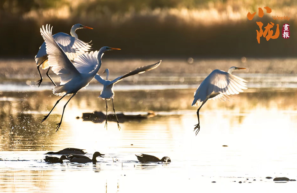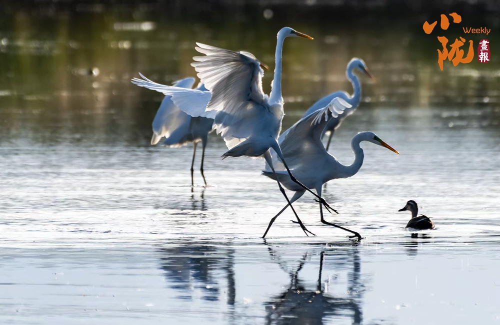 湖中的白鷺翩翩起舞,嬉鬧翻飛,歡快鳴叫,有的停落湖岸,有的游向湖心,有的翻飛空中,為游客帶來無盡的歡樂。看鳥兒們嬉鬧,仿佛回到童年時代。自由、自在、生機無限,讓每個人感受到無窮的生命力量。