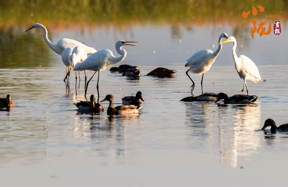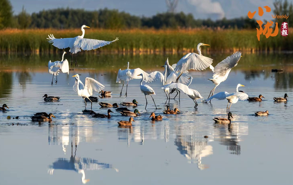 春天,這里萬物復(fù)蘇,蘆葦新綠,候鳥歸來,整個公園充滿生機。它們依水而居,或在水中游泳和潛水,或在淺水、灘地與岸邊涉行,或在其上空飛行,引得游人們駐足觀看,構(gòu)成一幅人與自然和諧共生的生態(tài)畫卷。
