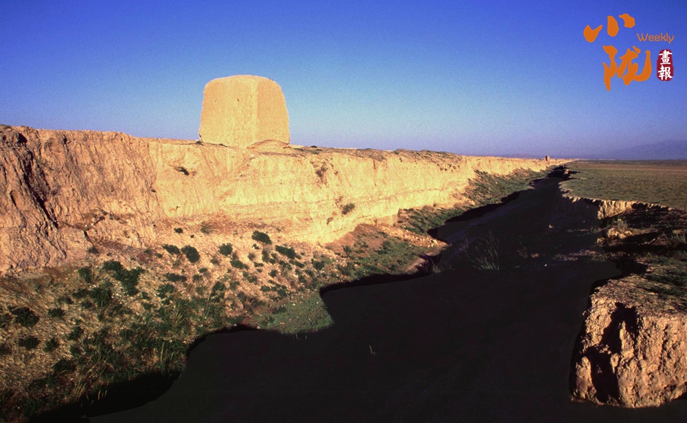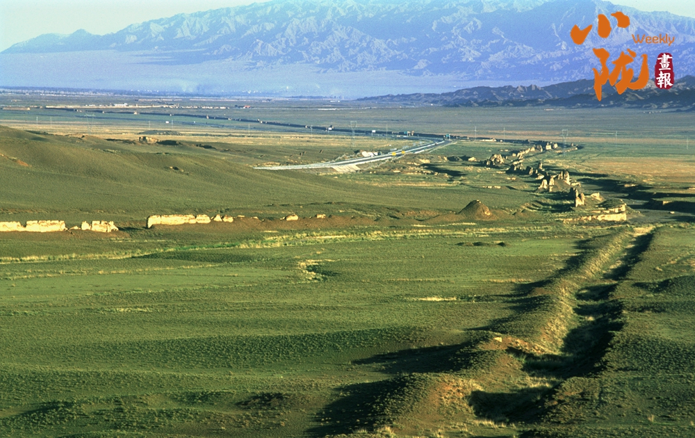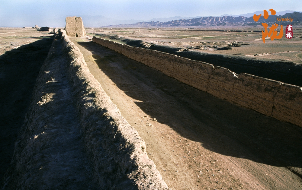 在黛藍(lán)色山脈的映襯下,漢明長(zhǎng)城蜿蜒并行,高于地面的黃色城墻是明長(zhǎng)城,而顏色稍深的壕溝是漢長(zhǎng)城,兩條跨越千載的古長(zhǎng)城最近處不過(guò)十余米,仿佛攜手講述著遠(yuǎn)古的故事……它們也猶如兩位忠誠(chéng)的衛(wèi)士,守護(hù)著這片古老的土地,也見證了絲綢之路的興衰變遷。