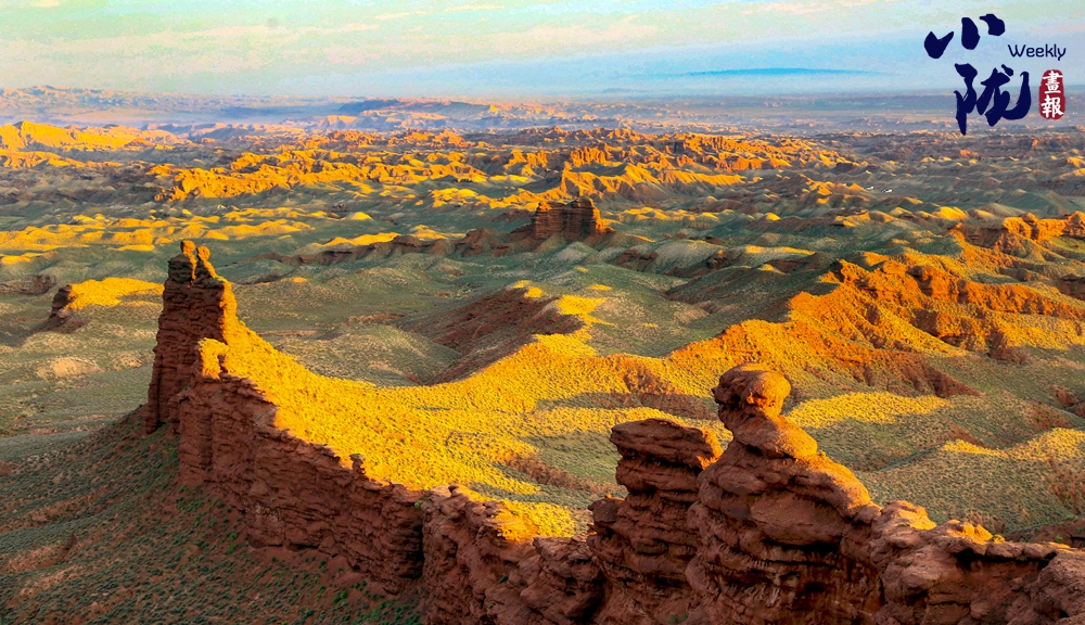 這里,丹霞地貌如同一幅絢爛畫卷。赭紅色的山體在歲月的雕琢下,形成了峰林、石柱與峽谷相互輝映的迷人景致,令人仿佛踏入了一個異域星球般的神秘世界。只有親臨其中,才能深刻體會這獨特地貌的壯美與神秘。俯瞰之下,金黃的色彩在陽光下閃耀,如同畫家精心調配的顏料鋪滿整個峽谷,鮮明而生動。