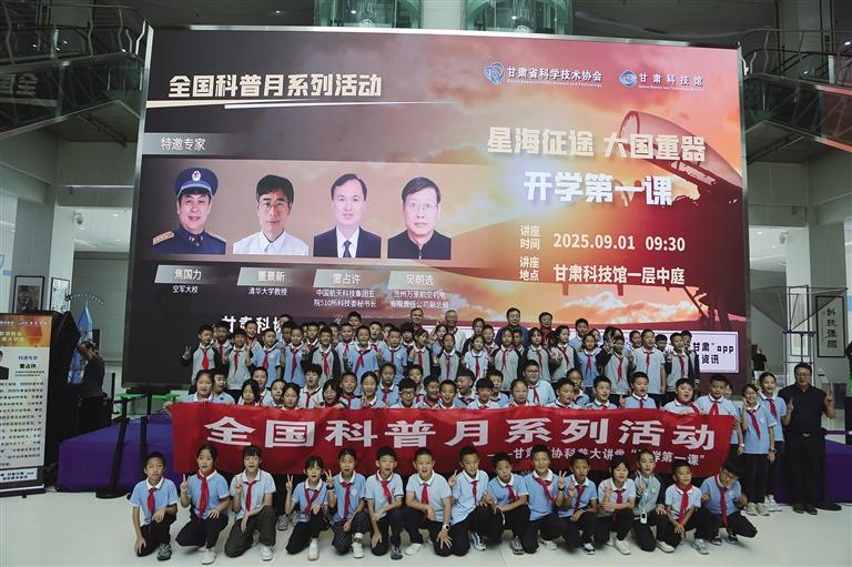 中國甘肅網(wǎng)9月3日訊 據(jù)蘭州晚報報道  9月1日,全國科普月啟幕之際,甘肅科技館一場別開生面的科普講座開講。活動特邀空軍大校焦國力、清華大學(xué)教授董景新、蘭州萬里航空機電有限責(zé)任公司副總工程師吳朝選、中國航天科技集團(tuán)五院510所科技委秘書長雷占許四位科普專家,為120余名學(xué)生帶來精彩紛呈的“開學(xué)第一課”,帶領(lǐng)他們遨游星辰大海、探秘國之重器。