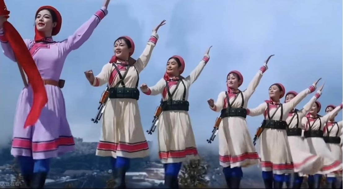 《草原女民兵》在膠片中獲得了永恒,那些蒙古族女民兵在銀幕上揚(yáng)鞭催馬的英姿,那些與暴風(fēng)雨搏斗的堅(jiān)韌身影,那些融合了多民族藝術(shù)元素的優(yōu)美動(dòng)作,之所以能夠穿越近半個(gè)世紀(jì)依然打動(dòng)我們,是因?yàn)槲璧笡]有將女民兵塑造成無堅(jiān)不摧的符號(hào),而是展現(xiàn)了她們的多面性:既是戍邊衛(wèi)國(guó)的戰(zhàn)士,也是會(huì)在風(fēng)雨中脆弱、在互助中溫暖的少女。這種人文關(guān)懷,讓英雄形象變得可感可親,也讓“家國(guó)情懷”不再是空洞的口號(hào),而是融入日常巡邏、并肩作戰(zhàn)的具體行動(dòng)。從云南邊防前線的慰問演出,到唐山大地震的救災(zāi)現(xiàn)場(chǎng),文工團(tuán)的舞者們帶著這支舞蹈走向基層,讓戰(zhàn)士們?cè)谂诨鹋c艱苦中感受到精神的力量,而舞蹈也在與觀眾的共鳴中,成為連接藝術(shù)與生活、個(gè)人與國(guó)家的紐帶。