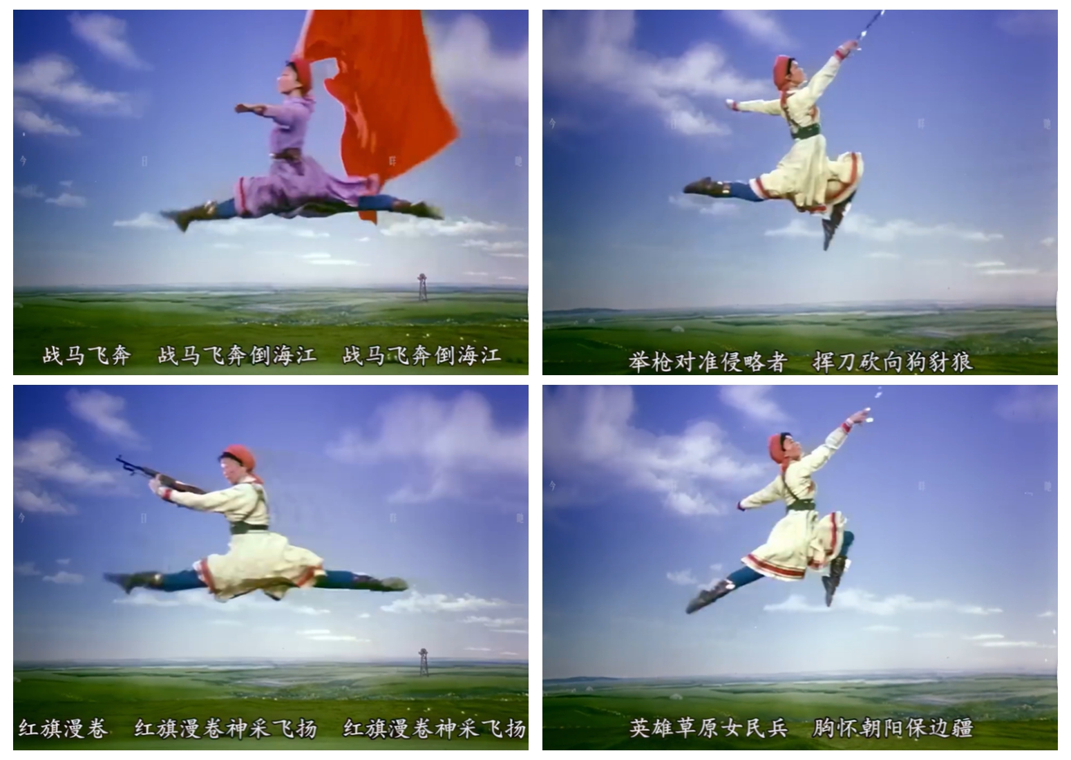 半個(gè)世紀(jì)后的今天,當(dāng)我們重新凝視那些略顯褪色的電影畫面,依然能感受到那股撲面而來的藝術(shù)沖擊力——女民兵們揚(yáng)鞭催馬的颯爽英姿,搏擊風(fēng)雨的堅(jiān)韌力量,以及蒙古族舞蹈特有的舒展與豪邁。這些本應(yīng)隨著幕布落下而消失的舞臺(tái)瞬間,因電影而獲得了不朽。本文試圖探尋,《百花爭(zhēng)艷》作為特定歷史時(shí)期的藝術(shù)載體,究竟通過怎樣的方式,使《草原女民兵》這樣一部根植于時(shí)代土壤的舞蹈作品,突破了時(shí)空的桎梏,成為跨越代際的審美記憶。