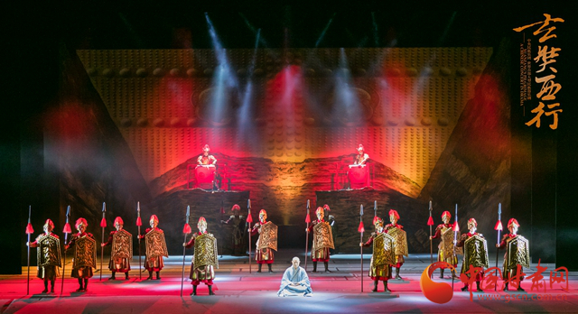 據(jù)了解,世界首部大型民族器樂劇《玄奘西行》由中央民族樂團于2017年組織創(chuàng)排完成,由姜瑩擔(dān)任作曲、編劇、總導(dǎo)演,著名導(dǎo)演馮小寧擔(dān)任藝術(shù)顧問,著名學(xué)者錢文忠擔(dān)任佛學(xué)顧問,并匯集了舞美設(shè)計張繼文、燈光設(shè)計邢辛、服裝設(shè)計阿寬和左環(huán)羽等一流主創(chuàng)。該劇以“戲劇”與“樂器”作為玄奘西行之路上精神文化高度凝練的象征與代表,彰顯了絲綢之路沿線各民族音樂在歷史的陶冶、沉淀、融合中兼收并蓄的多元文化特質(zhì)?!缎饰餍小范啻胃昂?nèi)外進行巡演,是我國最具品牌影響力和市場號召力的民族藝術(shù)瑰寶。