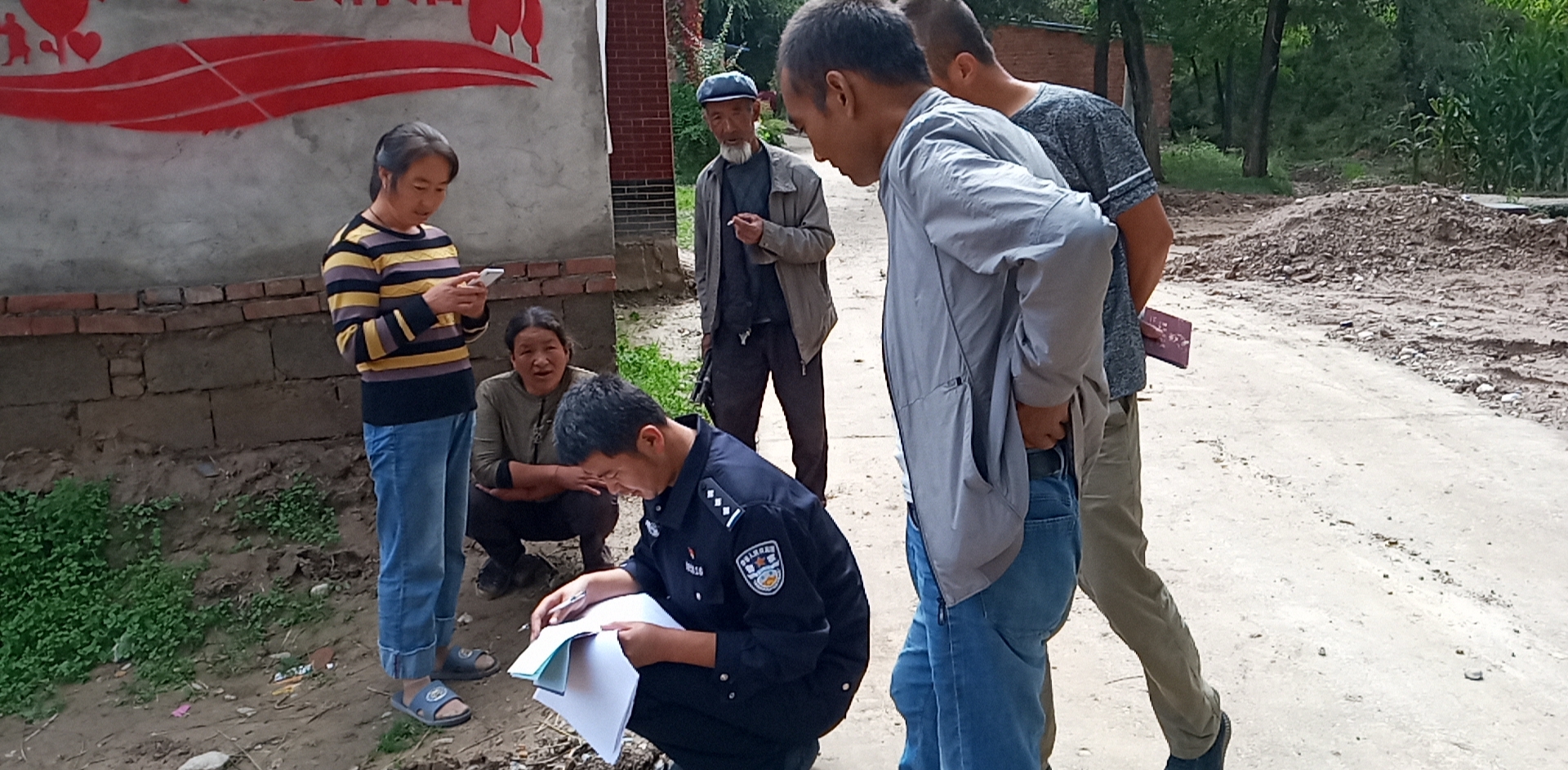 康樂縣公安局附城派出所城東社區(qū)警務(wù)室民警在轄區(qū)采集基礎(chǔ)信息。(2019年8月拍攝)城東社區(qū)警務(wù)室供圖