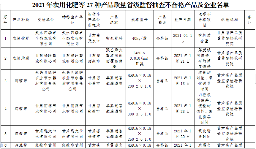 2021年農(nóng)用化肥等27種產(chǎn)品質(zhì)量省級監(jiān)督抽查不合格產(chǎn)品及企業(yè)名單(點(diǎn)擊下載)