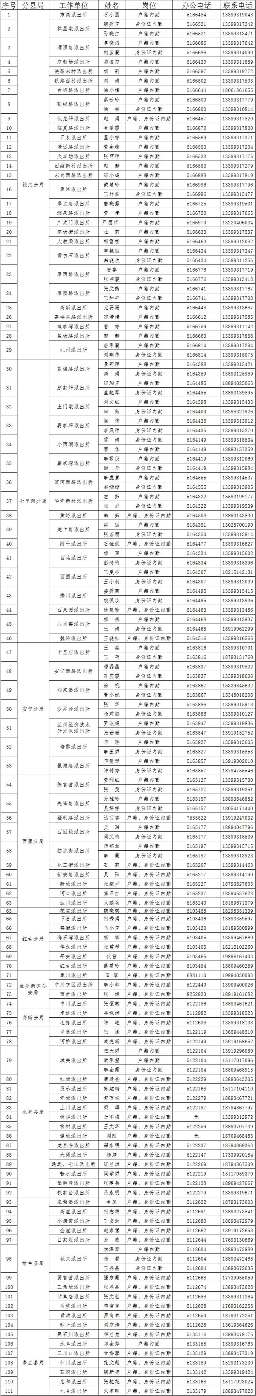 蘭州公安公布全市戶籍業(yè)務(wù)辦理預(yù)約電話