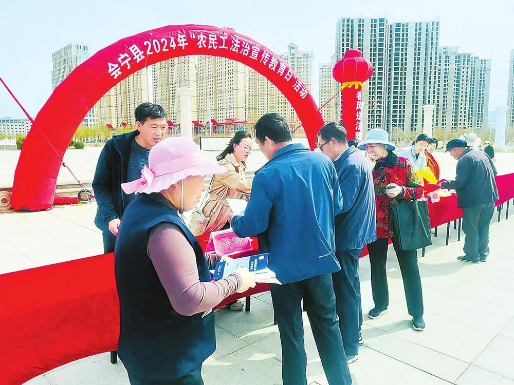 會(huì)寧縣司法局開(kāi)展“農(nóng)民工法治宣傳教育日”活動(dòng)。新甘肅·甘肅法治報(bào)通訊員張彩君攝