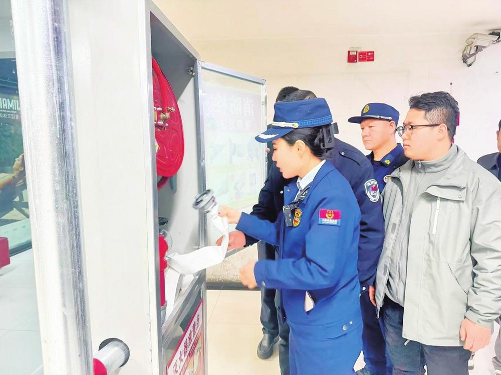 張文娟和同事檢查消防安全設(shè)施。城關(guān)區(qū)消防救援大隊供圖