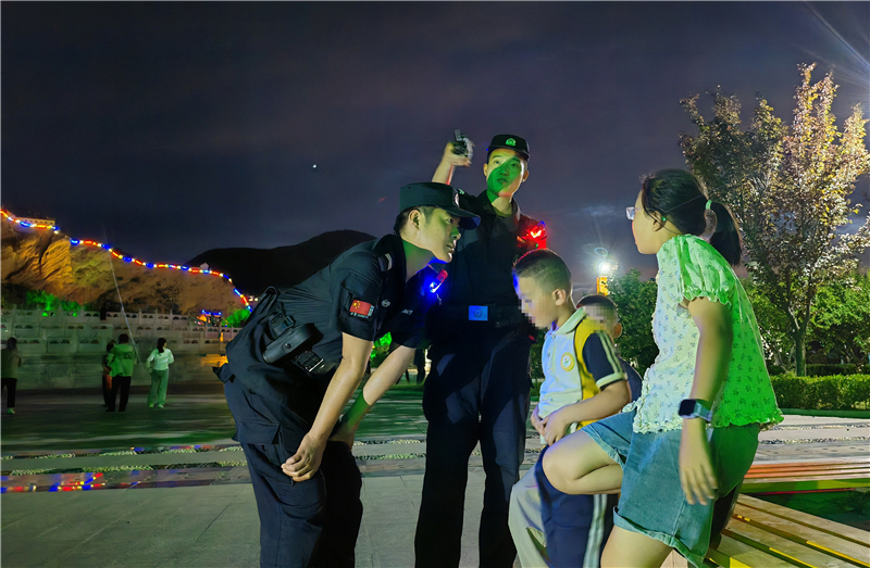 “小朋友,天黑了要注意安全,不要靠近湖邊。”特巡警大隊(duì)將公園廣場(chǎng)等群眾休閑聚集區(qū)域作為巡邏防控的重點(diǎn),民輔警在巡邏過(guò)程中一邊提醒玩耍的孩童注意安全,一邊向周邊群眾了解治安情況,同時(shí)主動(dòng)詢問(wèn)跳廣場(chǎng)舞的群眾是否存在噪音擾民等問(wèn)題,及時(shí)化解潛在矛盾糾紛。“有你們巡邏,我們帶孩子出來(lái)玩都感到很安心!”在公園散步的群眾紛紛表示。